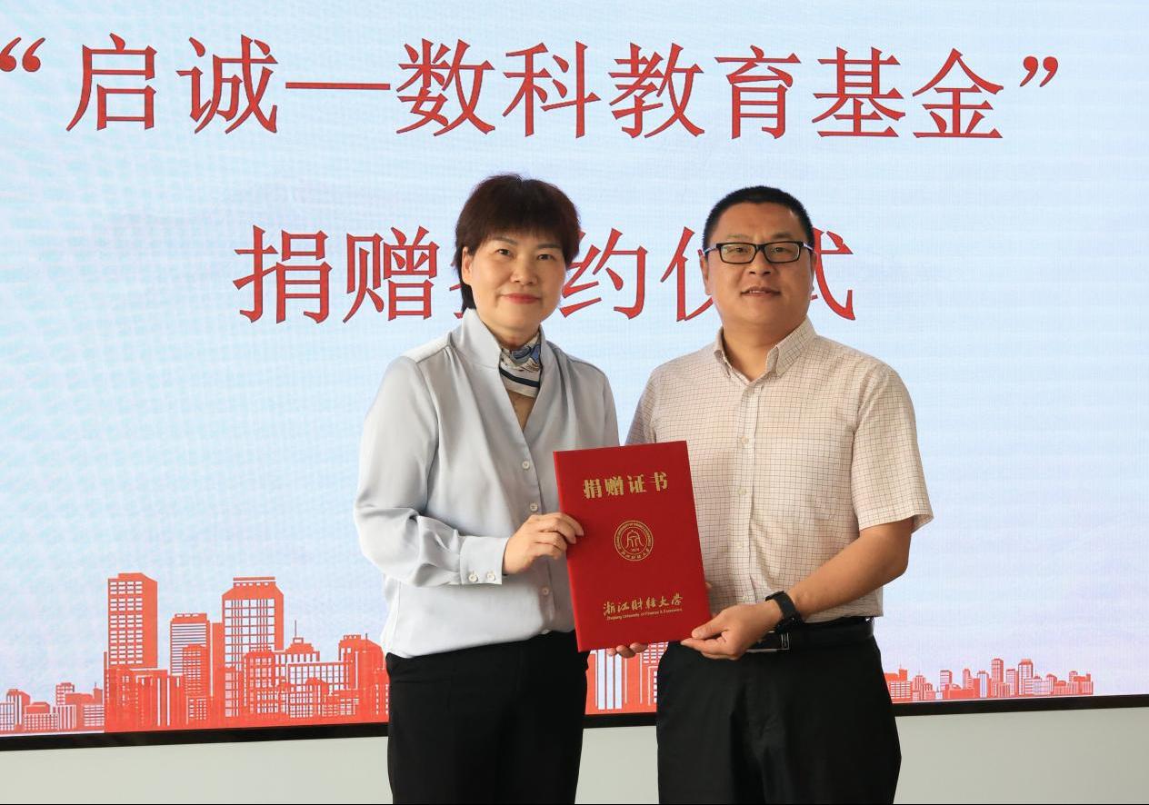 捐赠仪式上,王奎泉对启诚教育高管一行的到来表示欢迎,并对启诚教育支持学校教育事业发展以及帮助我校学生走好从学校到社会一里地的善举表示衷心感谢。“启诚-数科教育基金”的设立,不仅体现了企业关心教育事业与未来人才发展的真挚情怀,也体现了企业对浙江财经大学办学实力、办学成绩、办学特色的充分信赖和高度肯定。