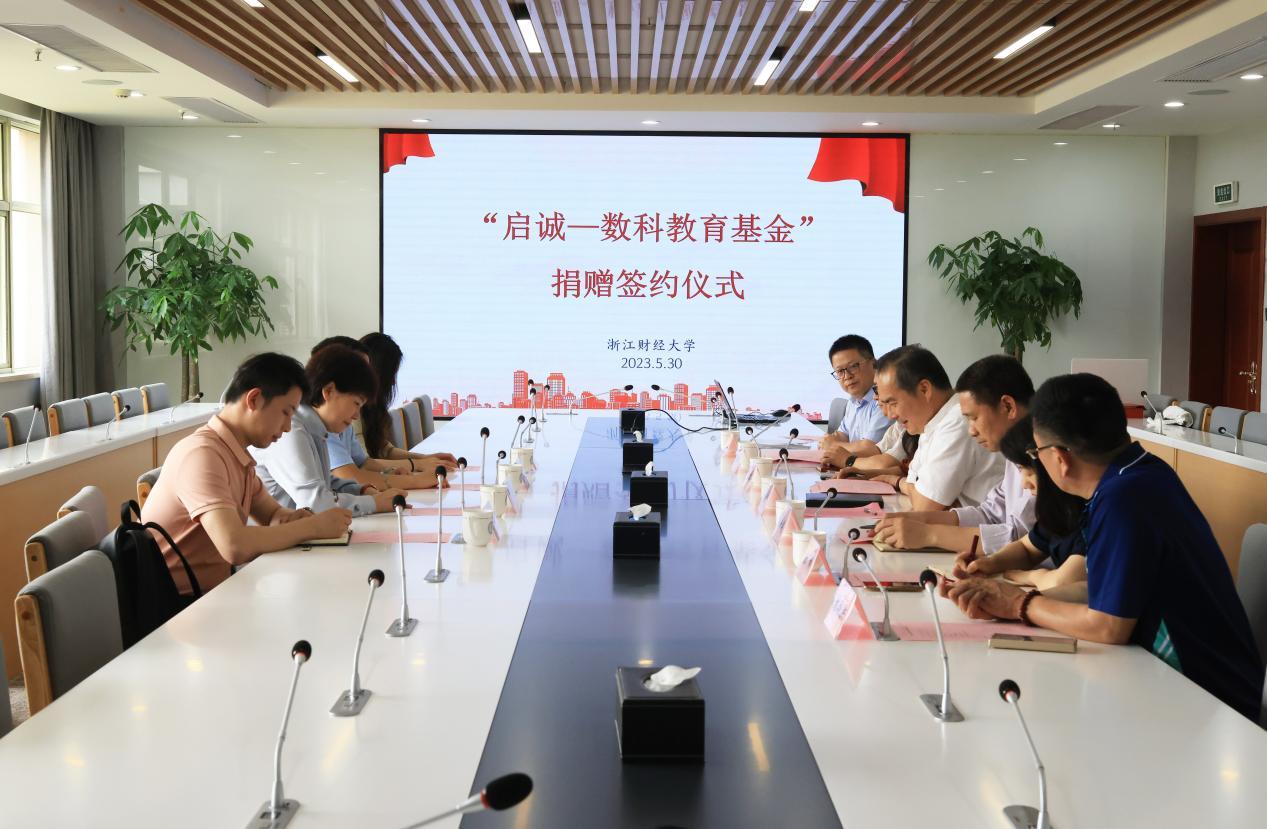5月30日下午,由启诚教育设立的“启诚-数科教育基金”捐赠签约仪式在行政楼200会议室举行。浙江财经大学副校长王奎泉、启诚教育董事金海芬、校社会合作办和校友办主任张红英、计划财务处副处长张稀、雷速足球