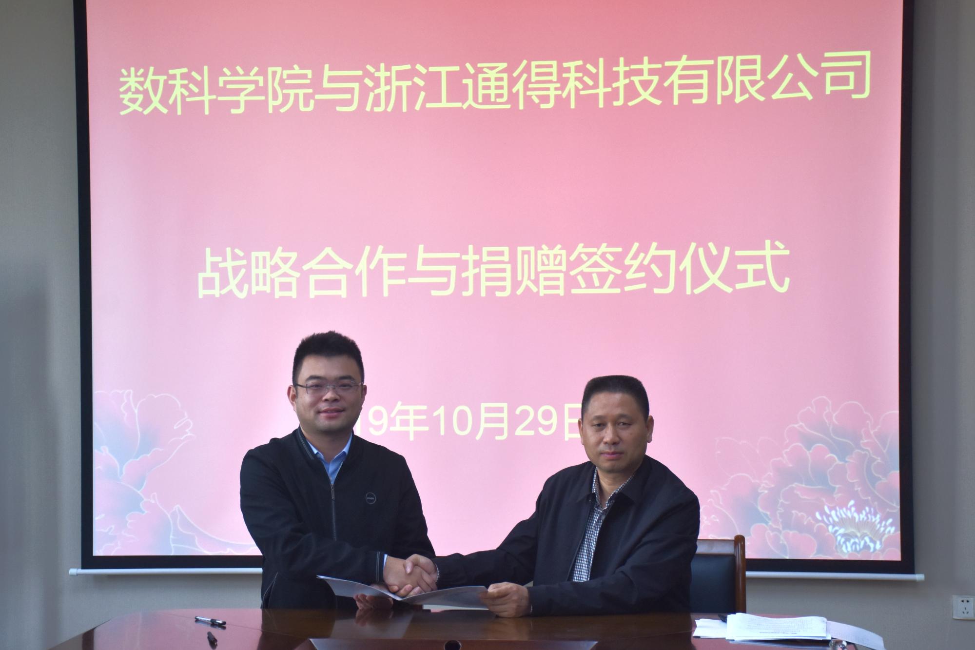 随后,通得公司总经理颜泾、数科学院院长洪兴建共同签订了通得“思源”大数据发展基金合作协议书。党委书记周君兴向颜泾总经理颁发了捐赠证书。