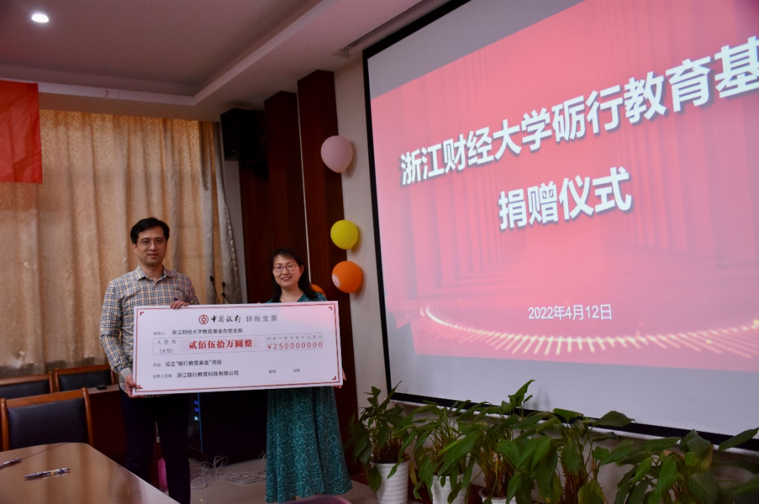 捐赠仪式上,徐晓东副校长对砺行教育一行的到来表示欢迎,并对砺行教育支持学校教育事业发展以及关爱我校学生成长的善举表示衷心感谢。“砺行教育基金”的设立,不仅体现了爱心企业热爱教育事业的滚烫初心和回馈社会的使命担当,同时也是对浙江财经大学办学实力、办学成绩、办学特色的充分信赖和高度肯定。