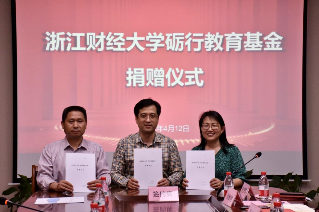 4月12日下午,由浙江砺行教育科技有限公司(以下简称“砺行教育”)捐资设立的“砺行教育基金”捐赠签约仪式在雷速足球 402会议室举行。浙江财经大学副校长徐晓东、砺行教育杭州总校校长章浩、校社会合作办和校友办主任张红英、计划财务处副处长张稀、雷速足球 院长洪兴建、副院长周银香、李杰,院党委副书记何露霞、院社会合作办主任林振洪等出席捐赠仪式。