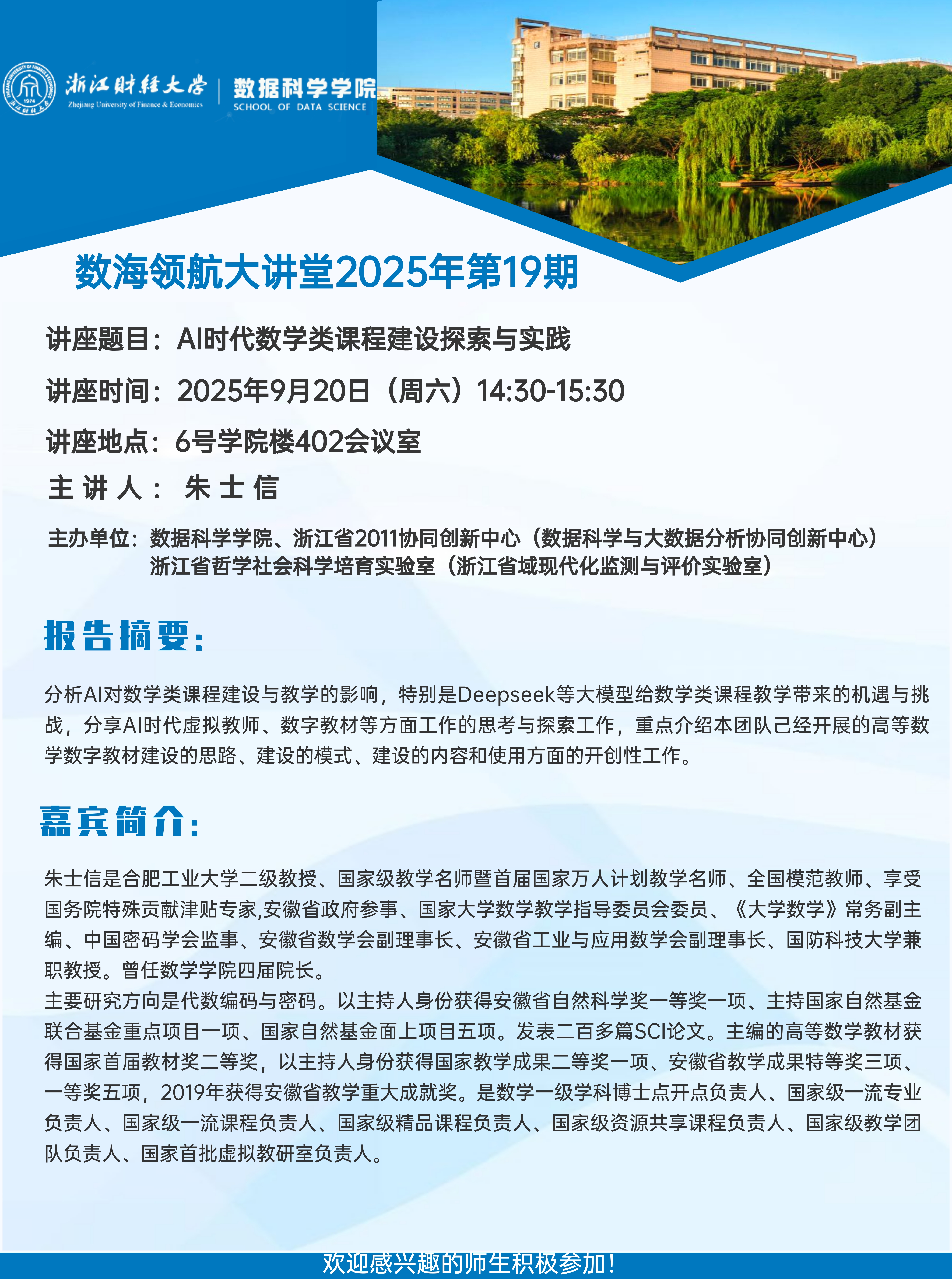 上一条:数据科学学院成功举办 “AI 时代数学类课程建设探索与实践” 讲座 下一条:关于填写2024-2025学年教师教学工作情况登记表的通知