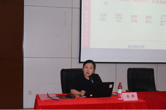 人文与传播学院党委书记、副院长高燕就“如何做合格大学生党员”,提出党员应当不断加强党史学习,提高自身党性修养和思想觉悟,并倡导学生党员洁身自好、明哲保身、严于律己。