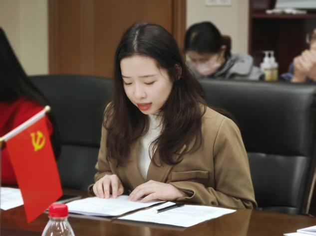 根据会议议程安排,田婧茹同志首先带领与会党员进行党的二十大精神专题学习,对二十大报告提出的重要思想、重要观点、重大论断等作了系统梳理和深入浅出的解读。