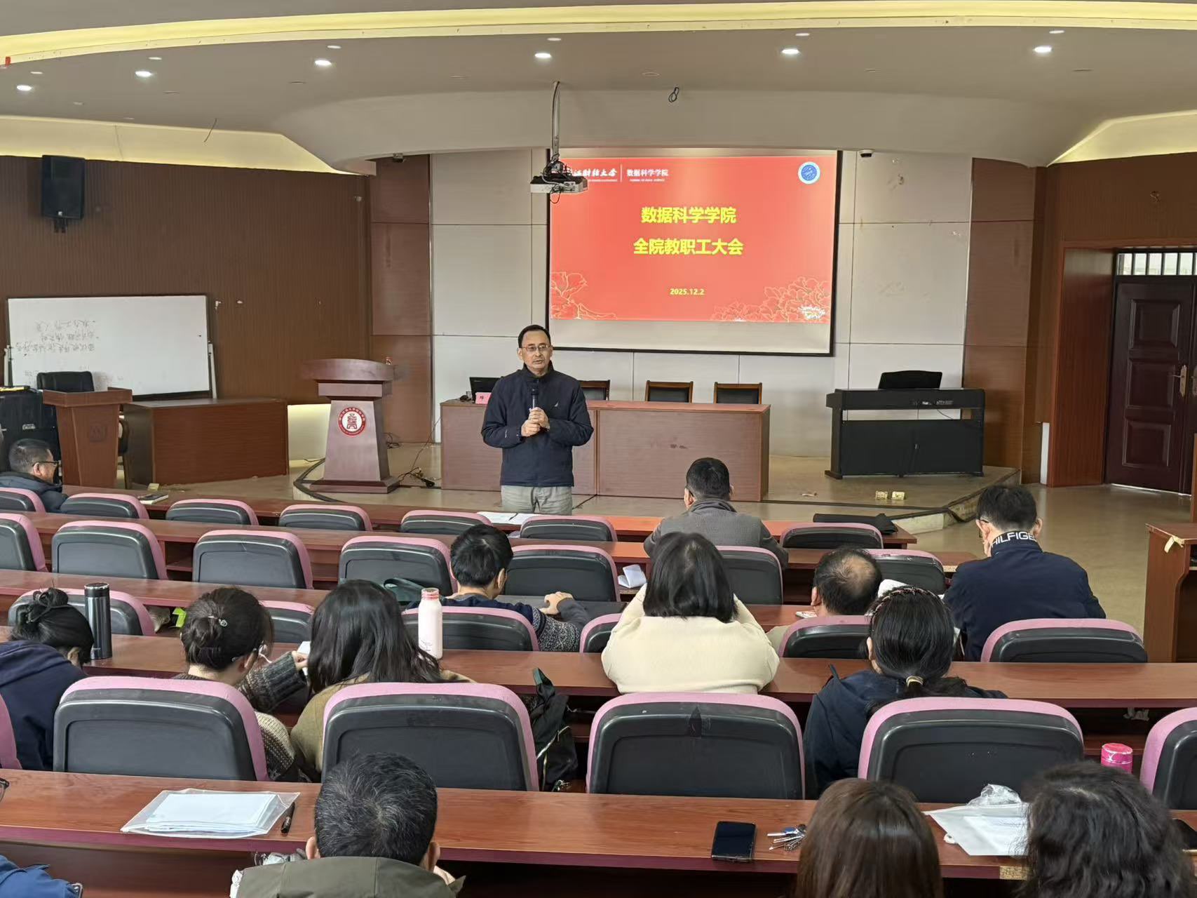 为搭建政策传达与沟通交流的桥梁,帮助学院教职工全面、准确理解相关政策内涵,12月2日下午,数据科学学院在6号学院楼219报告厅举办了“数科讲坛”第6期专题讲座。本次讲座聚焦“职称评聘和收入分配政策解读”,特别邀请人事处、党委教师工作部邓川老师担任主讲,学院全体教职工参与。