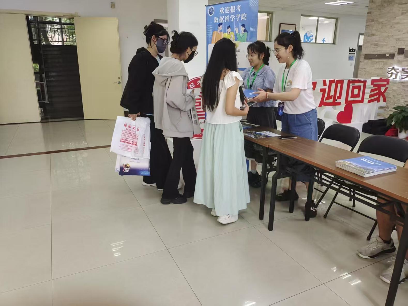 活动现场,学院精心布置了宣传展板,展示了学院的学科简介、师资力量、专业设置以及研究生招生人数等内容。同时还准备了招生宣传手册,供同学们详细了解各专业内容。