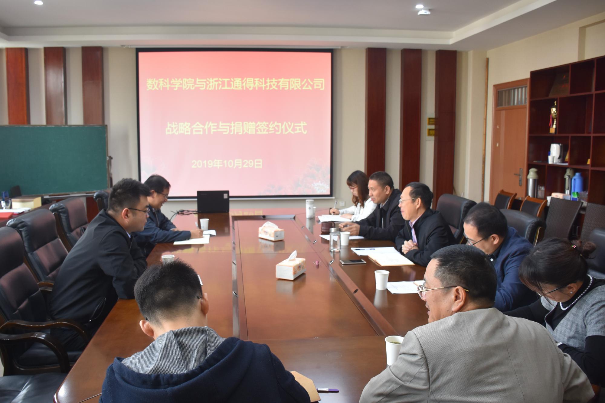10月29日,浙江财经大学数据科学学院与浙江通得科技股份有限公司(以下简称“通得公司”)签订战略合作协议,双方联合成立通得“思源”大数据发展基金。通得公司领导,数科学院院长洪兴建、党委书记周君兴、副书记刘向前、副院长罗季以及学院其他部门代表出席签约仪式。