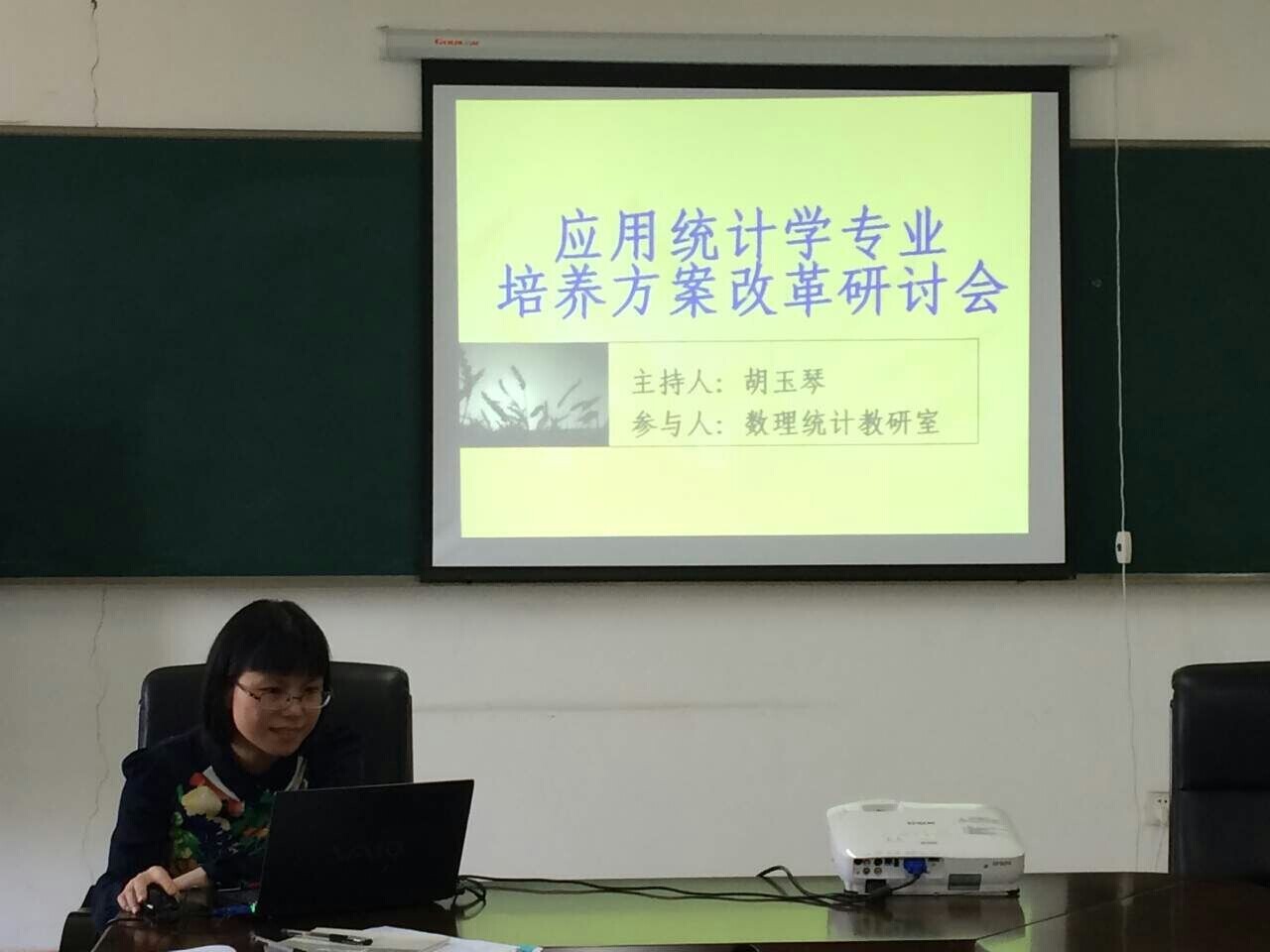 2015年5月5日下午,数学与统计学院在6号楼402会议室召开了“应用统计学专业培养方案”研讨会,会议由教研室主任胡玉琴老师主持,数理统计教研室全体教师参加了本次研讨。
