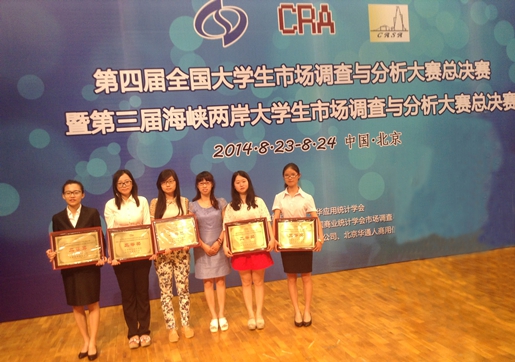 8月23-24日,由中国商业统计学会和(台湾)中华应用统计学会联合举办的“第四届全国大学生市场调查与分析大赛总决赛暨第三届海峡两岸大学生市场调查与分析大赛总决赛”在对外经济贸易大学落下帷幕。经过紧张激烈的专家评审和现场问辩,我校参赛作品获得一等奖1项,二等奖3项,三等奖1项的佳绩。
