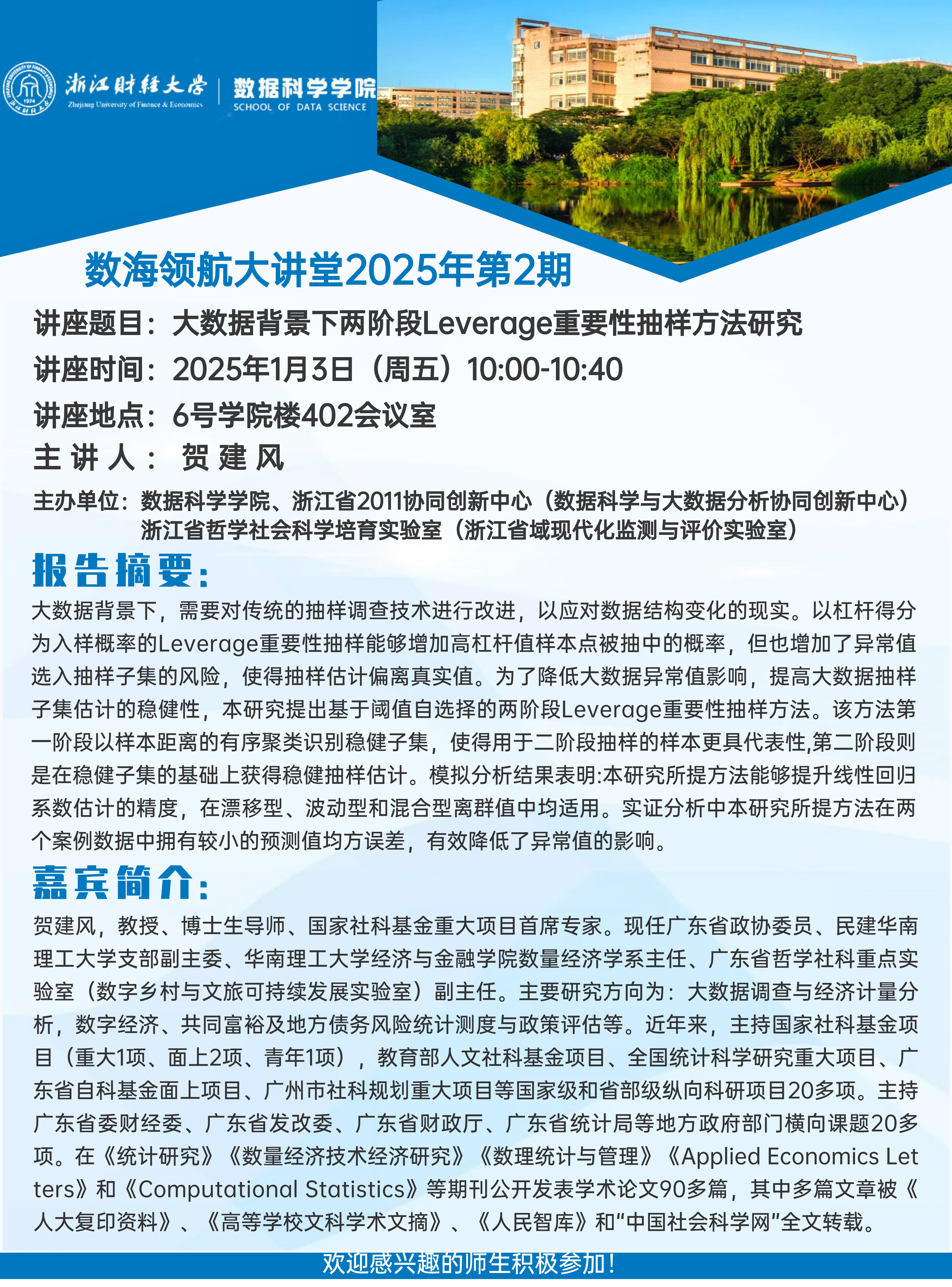 上一条:数海领航大讲堂2025年第3期-西南财经大学马丹教授 下一条:数海领航大讲堂2025年第1期-北京师范大学王亚菲教授
