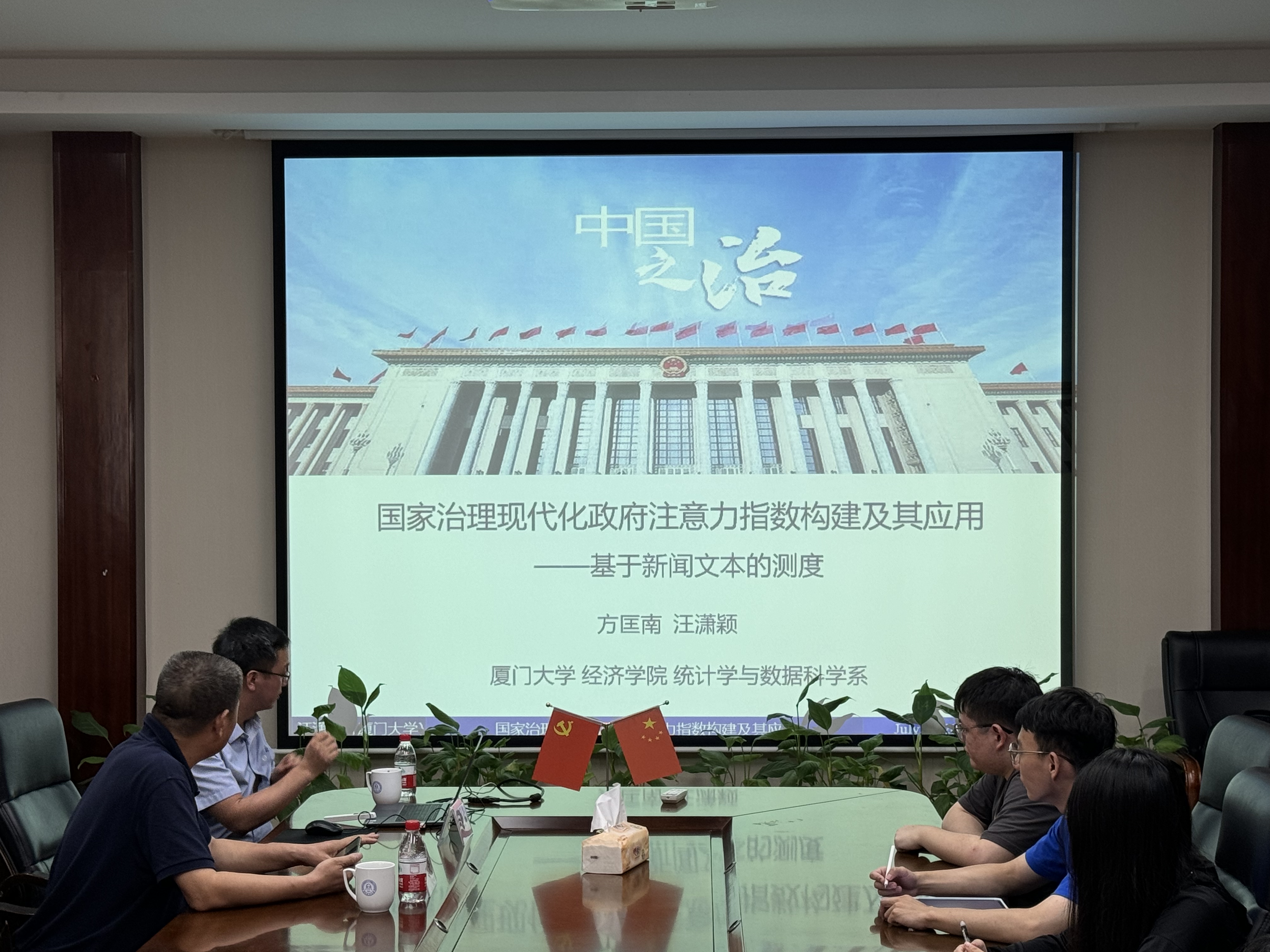 举行数海领航大讲堂2024年第11期。本期邀请厦门大学方匡南教授为全院师生带来一场题为“国家治理现代化政府注意力指数构建及其应用——基于新闻文本的测度”的学术讲座。讲座由院长洪兴建教授主持,部分教师及研究生参加了此次讲座。