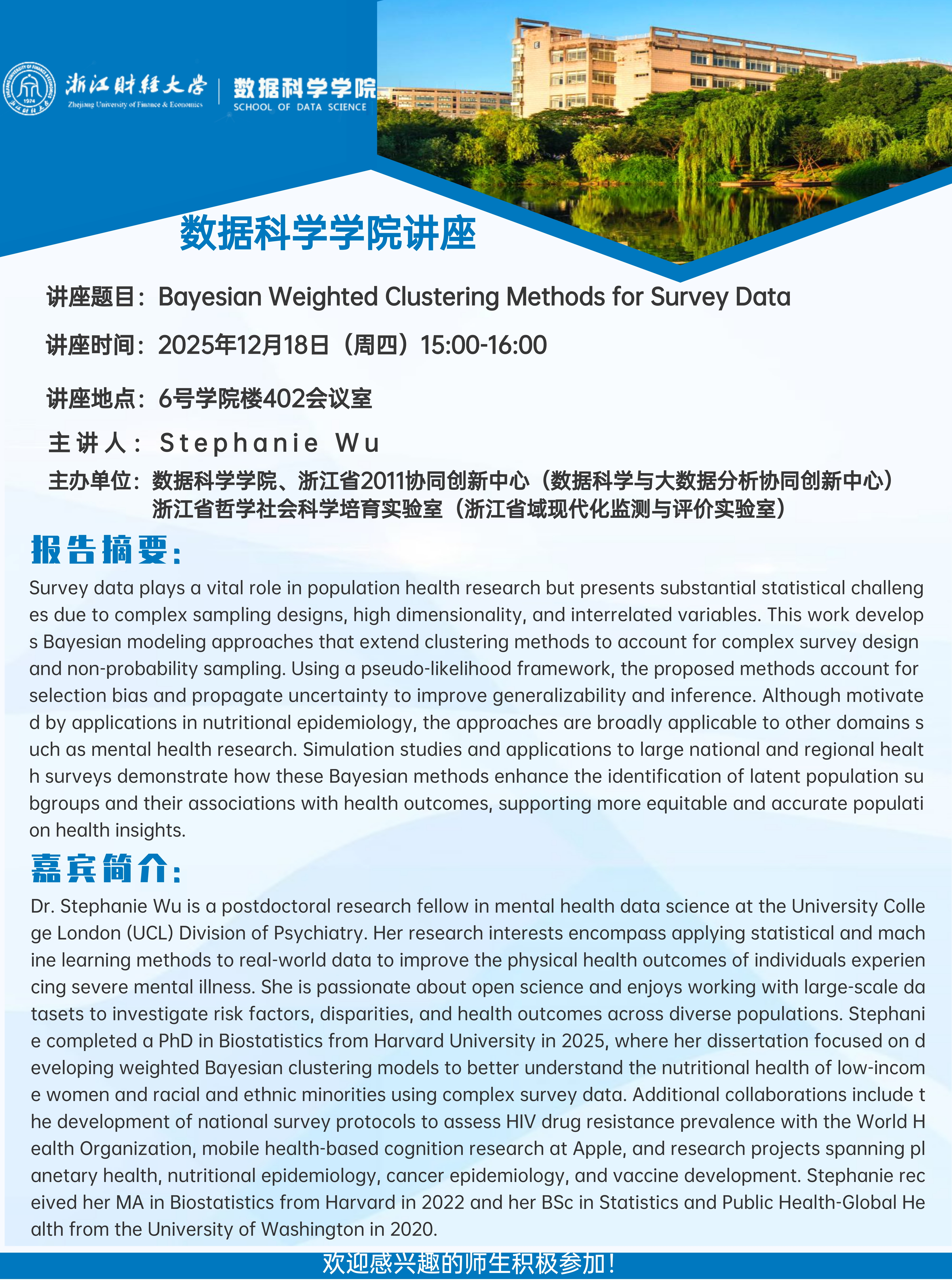 上一条:运用时间序列发现系统的动态行为:Takens'嵌入定理、统计推断与深度学习 ——数海领航大讲堂2025年第27期开讲 下一条:雷速足球 讲座信息-the Statistics Department at ENSAE/CREST Austin J. Stromme助理教授