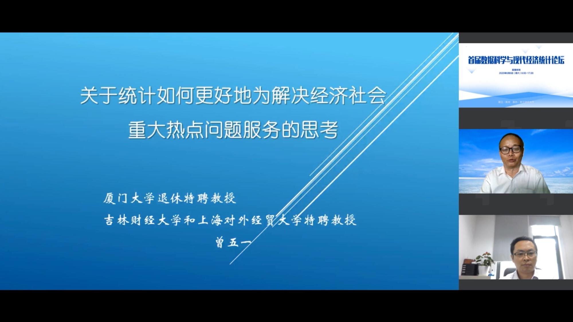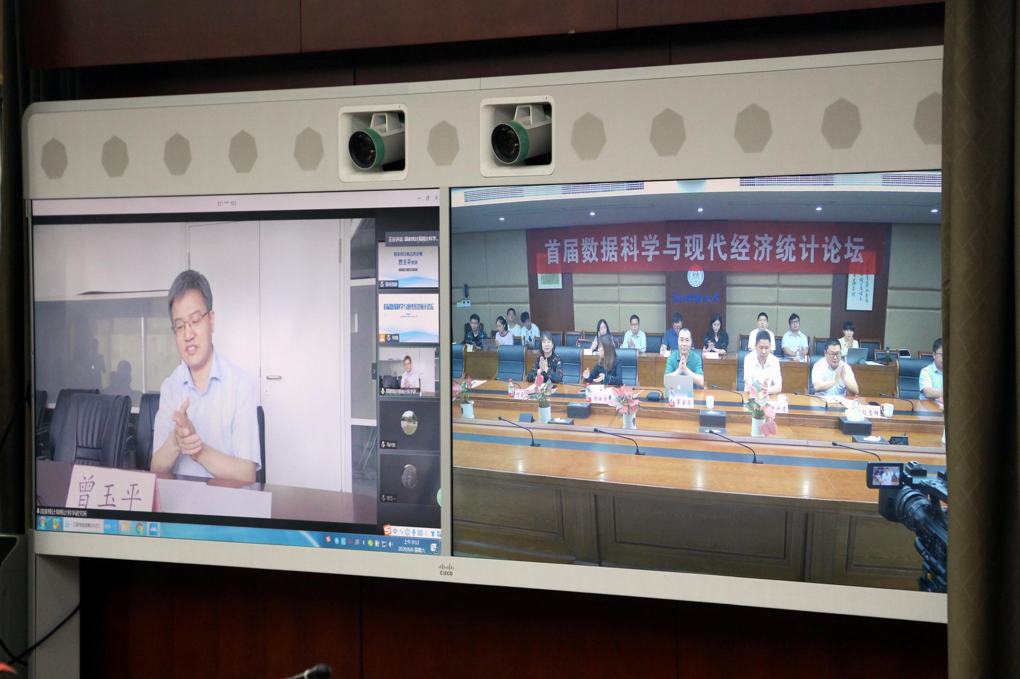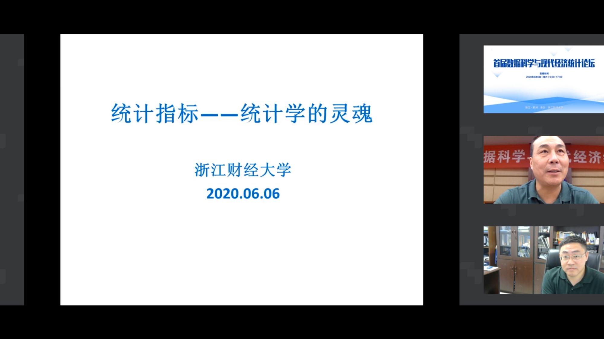 院长洪兴建教授主持,我校党委书记李金昌和国家统计局总统计师曾玉平分别致辞。李书记简要介绍了近年来我校发展所取得的成绩,指出我国经济进入了“新常态”和高质量发展阶段,给经济统计研究带来了新的机遇和挑战,希望与会专家、学者和业界人士通过“云相会”这种特殊方式,有力推动经济统计理论研究与实践的创新发展,促进多学科的深度交流融合。