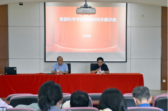 王寿春老师以《关于我校教学工作师德师风问题的思考》为主题,介绍了我国教育事业发展过程中的普遍问题以及我校的一些具体问题。王老师阐述了“师德=师爱+师能”的观点,师德建设要基于“师爱”和“师能”两方面展开,特别强调要加强“师爱”的建设,老师要爱学生、爱教学、爱教育事业。最后,王老师基于督导工作中发现的数科学院的若干突出问题,针对性地提出直播足球比分