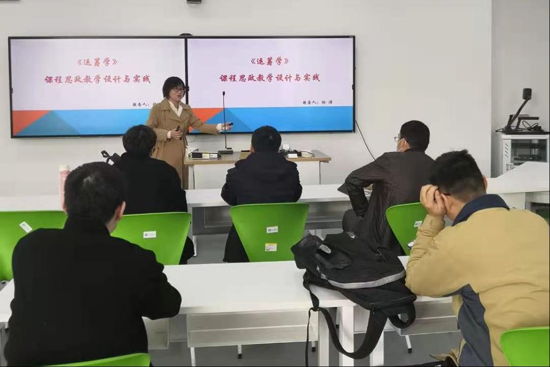 孙洁老师结合自身的教学实践,采用案例教学法分享了运筹学专业课程融入思政元素的内容和方法,以及如何对融入课程思政产生的效果和教学目标的达成进行分析和评价。