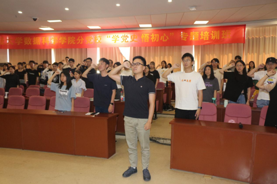 党史教育授课之余,由学生党员及预备党员分组进行的小组党史学习与思考的讨论,同样对于党员党史教育意义重大。在讨论中,成员们各抒己见,讲述着自己对于党史的思索与感悟,加深着对党和党员身份的意义认知。而在党课学习的结业典礼上,学生党员们进行主题发言,论述自己对于党史学习教育的感悟与心得。与此同时,全体与会成员庄严宣誓,传达自己坚守党的初心与传承党的使命的坚定决心。