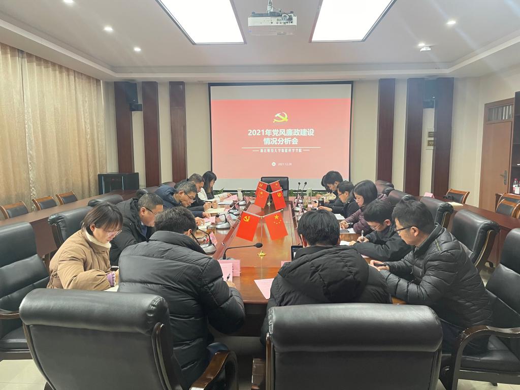 12月28日上午,数据科学学院于6号楼402会议室举行了2021年度学院领导班子党风廉政建设情况分析会。校纪委副书记、纪检监察室党委巡查办主任沈水法、学院领导班子成员、学院党委委员、纪委委员、特邀监察员出席本次会议。会议由学院纪委书记何露霞主持。