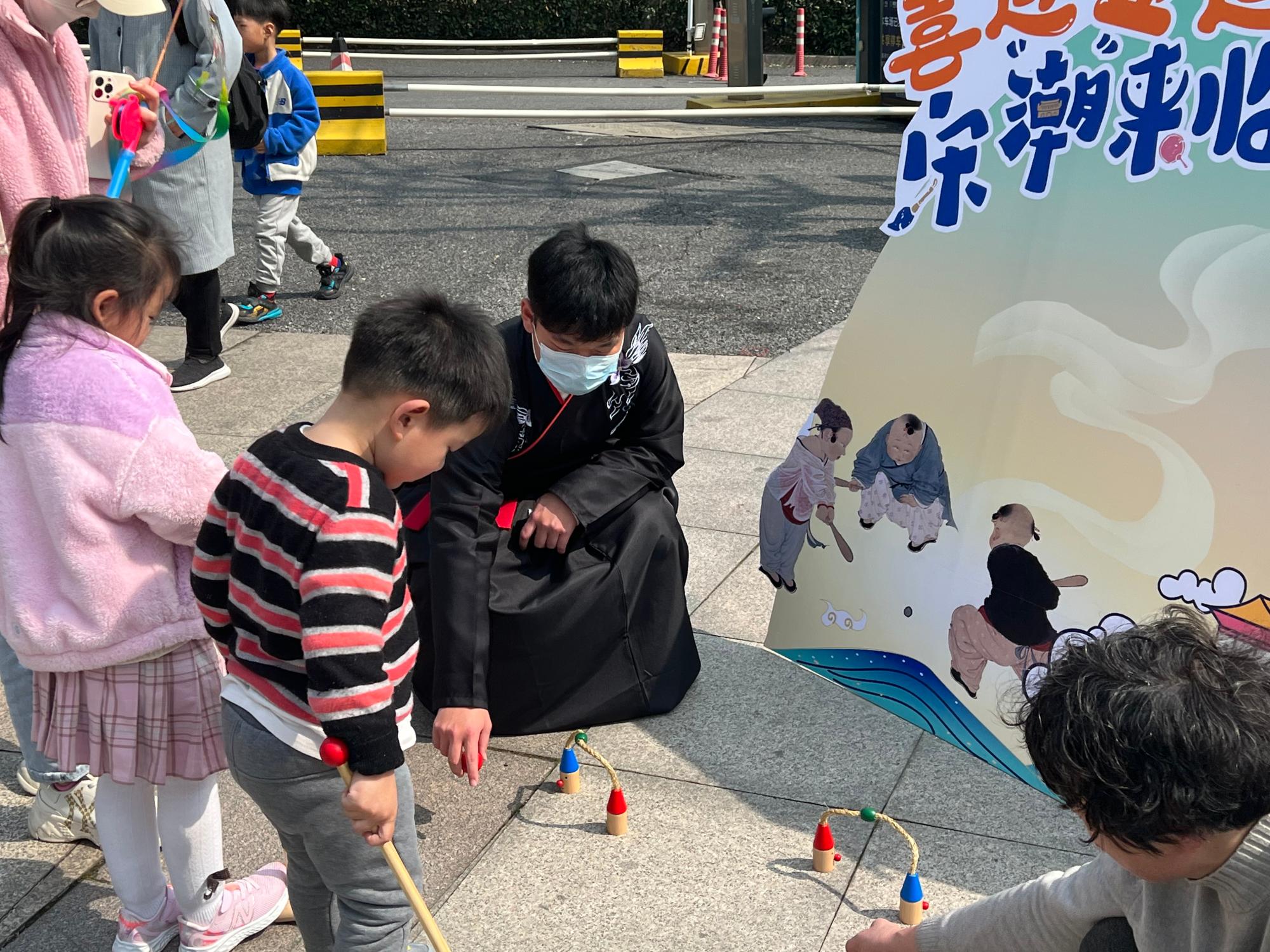 学院组织志愿者来到临平区科技馆参加以“喜迎亚运·宋‘潮’来临”为主题的志愿服务活动。活动现场,志愿者们和孩子一起通过科技、益智、美学、面孔、腔调、穿搭等14个互动项目,带领小朋友们一起“穿越”宋朝,沉浸式领略宋代风情,一睹精巧典雅的大宋匠心。