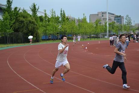 运动员顽强拼搏,场下同学们纷纷为运动健儿们呐喊加油。团结互助,积极拼搏的数统精神成为运动场上一到亮丽风景线。