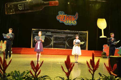 首发一场歌伴舞《滚滚红尘》拉开了序幕。白影曼曼,高歌引吭,何露霞老师的顶力出场轰出一股热浪,让同学们激动不已。紧接着由08、09、11级联合打造的小品《毕业那天,我们一起失恋了》上演了大学中那不羁的爱情,带来了阵阵欢笑。之后劲辣的舞蹈《cry cry》更是点燃了台下的观众,现场气氛很是高昂。
