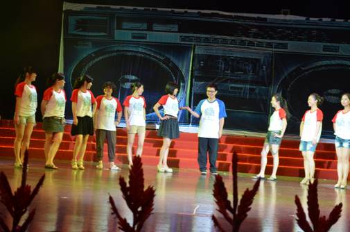 周君兴等数名老师登台合演,引来了如潮的掌声。