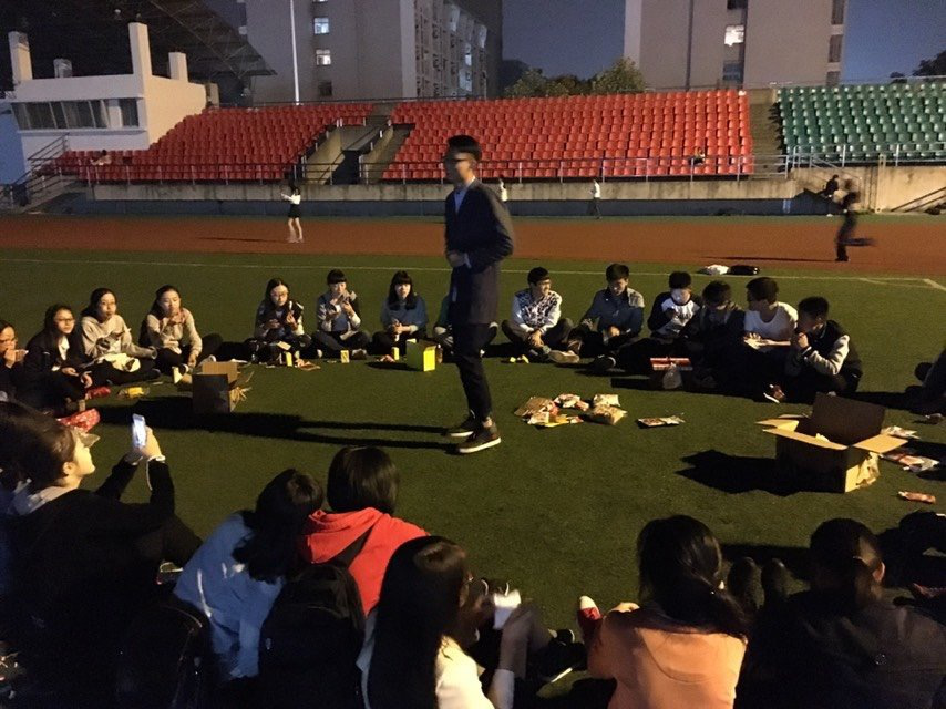 首先,同学们在操场上围坐成一圈,为活跃班级气氛,班委们为每位同学分发了零食与饮料。同学们依次发言,分享入学以来对大学生活、学习以及工作的一些感悟,在100天训练营中打卡、完成作业等的收获,读家书写回信期间的感受。分享各自大学感悟的过程中,同学们进一步加深了彼此的了解,增进了彼此间的友谊,班级的凝聚力也得到了提升。同时,通过对近2个月大学生活的回顾,也更好的让同学们融入大学生活,为接下来的学习与工作做好准备。同学们在谈到读家书,写回信的活动时,言语里都充满了温情。不难看出,这项活动让同学们体会到了为人父母的不易,也是与父母良好沟通的一次很好机会。同学们对于100天训练营的感想则是又爱又恨。改变自己的过程并不是轻松的,相信在这项活动中,同学们能蜕变成为德智体美全面发展,真正的浙财人。