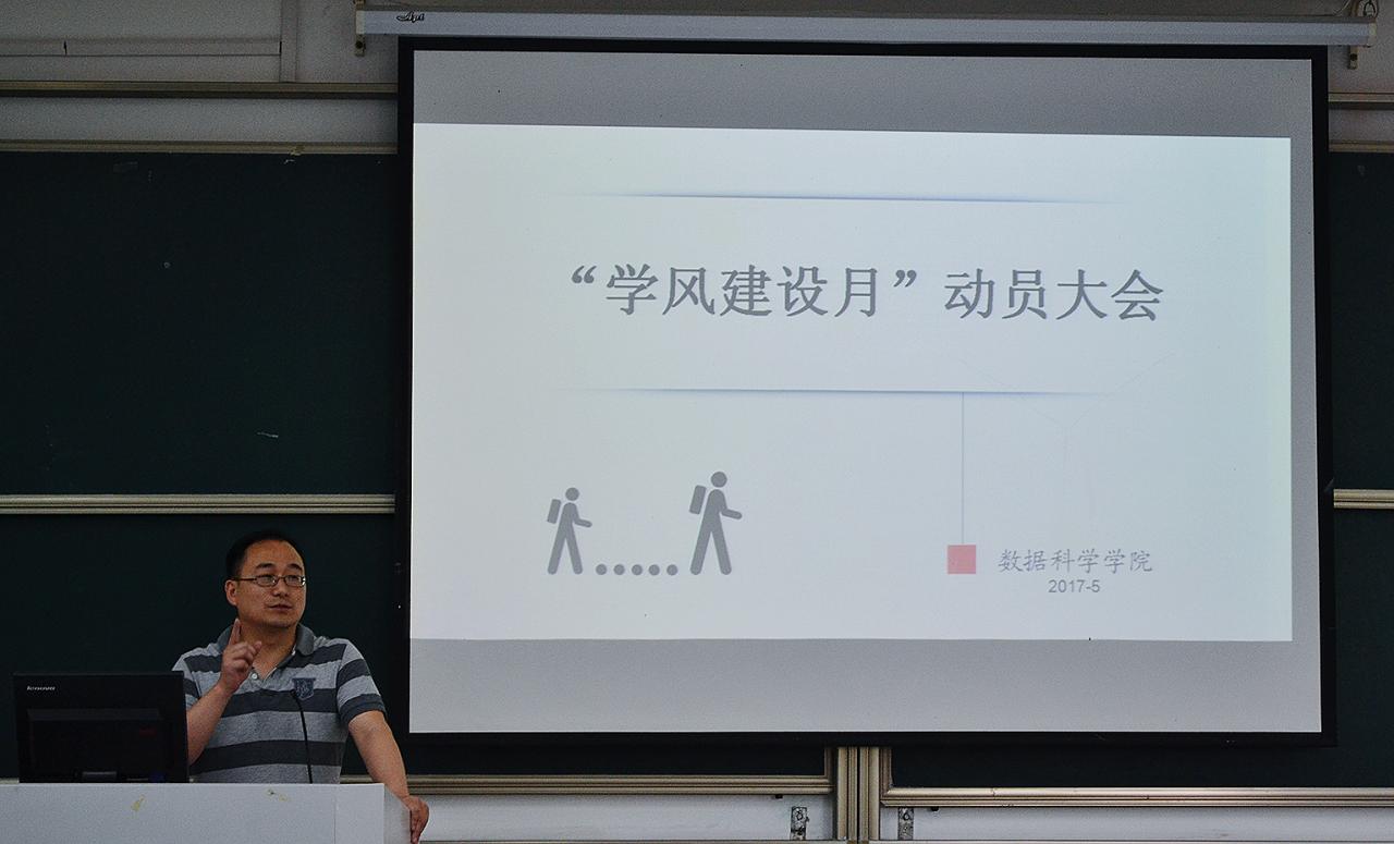 会上,刘向前副书记强调,对全体学生而言首要是做好学生的“学习本分”,养成良好的学习习惯,以打造“三无两高”课堂和“三不两勤”寝室严格要求自己。此次“学风建设月”活动适逢教育部对我校进行教学工作审核评估,评估内容涉及教学培养目标、教师队伍、学生发展特色等方面。刘向前副书记指出,全体同学应以此为契机,展现出数科学子良好的学风和多方面发展的风采。