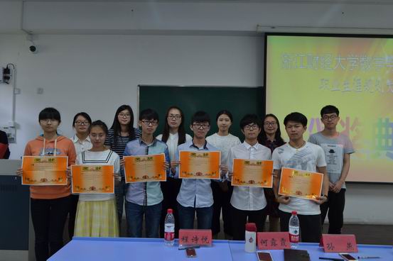一个多小时的比赛环节之后,激动人心的宣布分数时刻到来了。经过激烈的角逐,13信计的朱彬彬以其精彩的演讲征服了所有评委,获得一等奖。14数学的王金宇和14信计的郭萌分别获得二等奖和三等奖。14应统的李赞,14信计的周嘉楠以及14数学的林媛媛、罗俊杰获得了优胜奖。