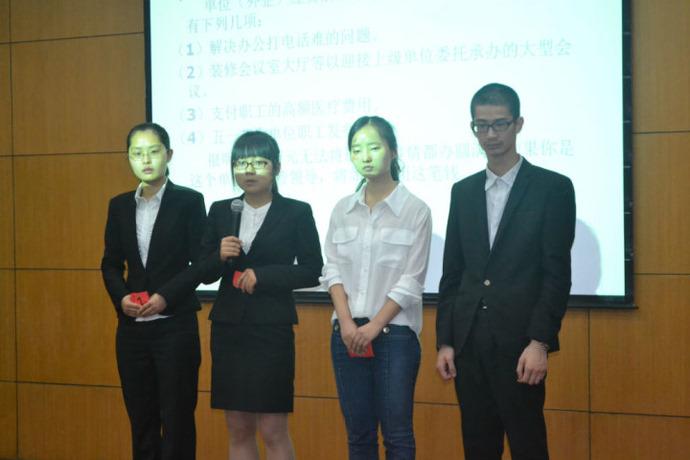 在何露霞老师简单的致辞后,比赛正式开始。本次大赛分为飒爽英姿示眼前、今朝才华今朝现和良驹终需要伯乐识三大环节。首先7位参赛选手分别进行了5分钟的自我介绍环节,就自己的在校荣誉以及实践经验进行了阐述。而后评委对7位选手的表现一一作了精彩点评,同时也针对如何提高面试技巧,如何在求职中脱颖而出等方面提供了许多实用的意见,随后的观众提问环节更是让在座的同学受益匪浅。第二环节7位选手通过现场抽签随机分成2组,进行了团队合作能力的测试。最后7组选手阐述了自己的求职意向,评委老师针对选手的求职意向,提出专业性或个人规划方面的问题,娄旭同学更是被三位评委轮番提问,显示了极高的人气。评委问题犀利独到,在场选手从容应答,赢得了阵阵掌声。