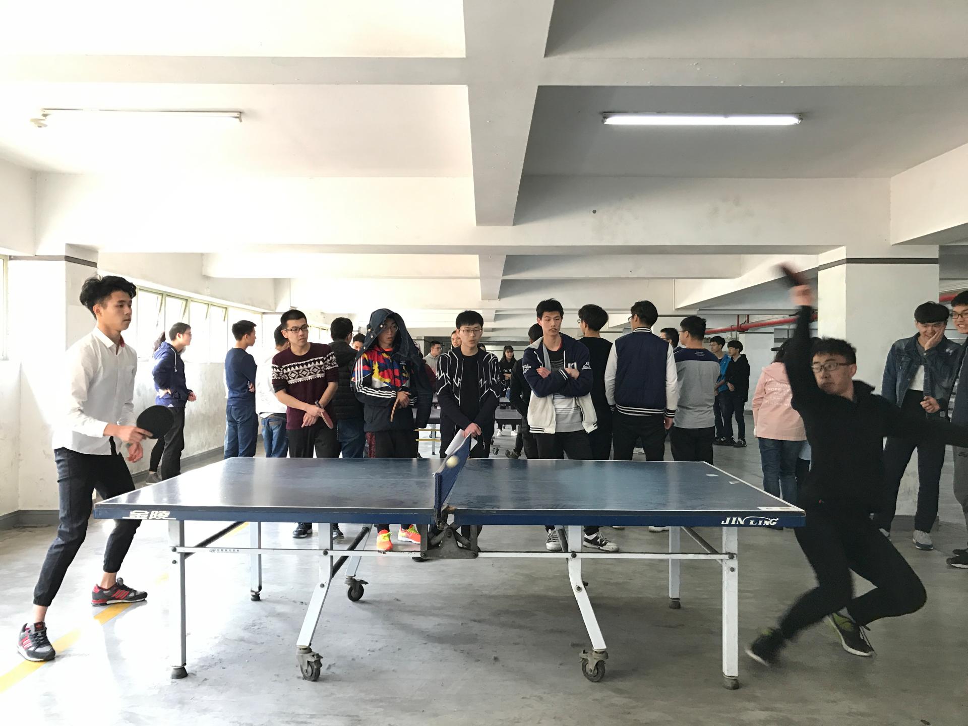2017年3月26日14:00,轻舞飞扬乒乓球友谊赛在学校C楼负一楼举行,参赛人员为16级班级选手,本次比赛本着“发展国球运动,丰富校园生活”的原则,促进同学体育运动,增强大学生的体质,丰富同学生活。比赛组织有序,有两个项目:团体对打赛、个人颠球赛。本着公平公正的原则。比赛为单打比赛,采取国际通用的11分制,比赛以中国乒协最新审定的《乒乓球竞赛规则》为基础,每人打一场,每班队伍由3男2女组成,三局两胜制。抽签决定两两班级PK,赢得三组队伍轮流团体对打争夺第一二三名,输的三组队伍同理争夺四五六名。