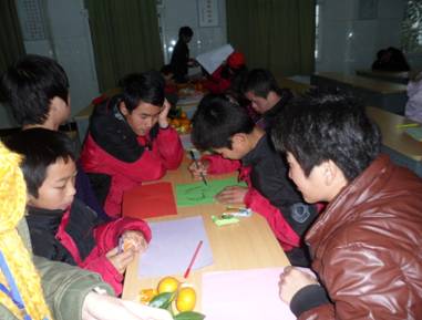 志愿者们早上9点正式出发,前往流量儿童中心。由于天气原因,本次慰问行动主要以室内活动为主,共分为四个环节。第一环节,志愿者们与小朋友加强互动,如下五子棋、象棋,打乒乓球等。第二环节,教唱感恩歌曲“爱因为在心中”。第三环节,小组比赛贴象鼻,在这一环节让小朋友认识团队的力量。第四环节,感恩大制作,志愿者们和小朋友一起做手工制作,送给他们最感激的人。在活动期间,直播足球比分