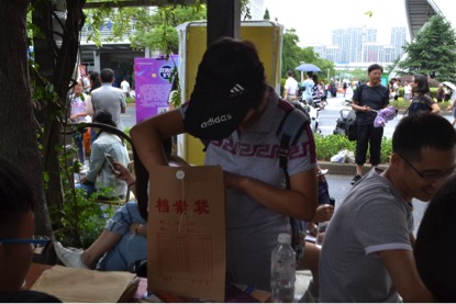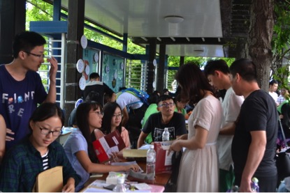 虽然天空飘着小雨,但是各班班导以及学生会志愿者的热情丝毫没有减少,早早地在文化长廊准备好各种材料,以饱满地精神和细致地服务等待新生们的到来。同时,学院领导和辅导员老师也亲临现场指导迎新工作。
