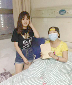 今年,我校13工商1班的盛雨晨同学不幸确诊为非霍奇金淋巴瘤,天价的手术费让她的家人举步维艰。得知这一消息后,全校同学都纷纷伸出援手,献出爱心。我校郭桢慈善爱心基金会也在第一时间开展援助活动。近日,郭桢慈善爱心基金会执行会长马司伲同学一行前往浙江省立德医院看望慰问了盛雨晨同学。