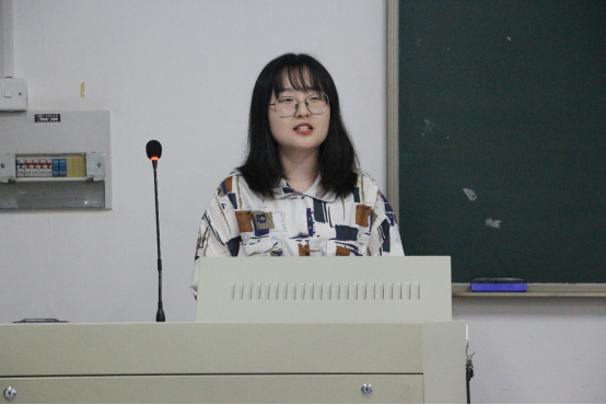 郑楚萱同学则为我们剖析了出国留学的利与弊,介绍出国留学所需要的材料,其中包含学历证明、成绩单、语言成绩、CV(个人简历)、PS(个人陈述)和介绍信,最后也鼓励有条件的学弟学妹敢于尝试海外留学,磨练自身,开阔视野。