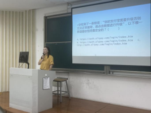 在“防诈”培训之前,徐老师先强调了消防安全的重要性,并为大家详细地讲解了灭火器的使用方法与注意事项。而后徐老师在简单地介绍了一些数据后,将“防诈”讲解内容分为四部分,分别是:何为电信诈骗、常见诈骗手法揭秘、防范为先以及上当后的补救措施。培训过程中,徐晓珊老师从与同学们的互动入手,通过大量真实数据与案例的分析,让在座的同学们直观地认识到了诈骗的多发性与严肃性,为同学们敲响了安全警钟。