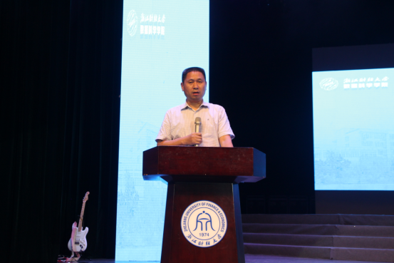 随后,洪兴建院长上台致辞为17级毕业生饯行,悉数回顾了这过去四年的点点滴滴,肯定了同学们在四年成长中取得的成绩,并深情寄语毕业生:希望大家珍惜青春,勇做数字经济的弄潮儿,在各自领域实现“让数据说真话”,为数据赋能贡献自己的价值;希望大家学会“永远不要和趋势作对”,认清时代发展潮流,与时代共发展;希望大家保持旺盛斗志和开放心态,保持舍我其谁的勇气,为国家和社会的外卷作出自己的贡献。