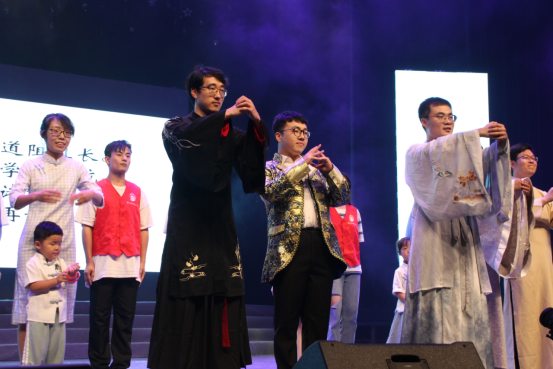 本次晚会共分为:“时光作渡”、“且待芳华”、“百年璀璨”三个篇章。热情的开场舞过后,迎来了别开生面的“一站到底”活动,主持人走下舞台与现场观众们进行互动,提问与学院息息相关的小细节,大屏幕上题目无声地翻动,但每一道题目都牵动起毕业生们过往四年的美好回忆,全场的气氛达到高潮。