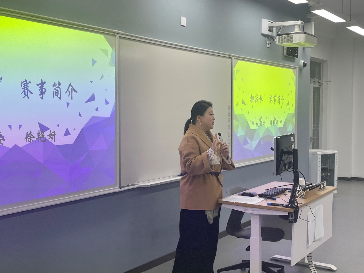 校团委老师徐艳妍应邀给同学们做了培训,培训共分为挑战杯介绍、新苗立项介绍以及学校对于科技竞赛的改革福利政策三块内容。