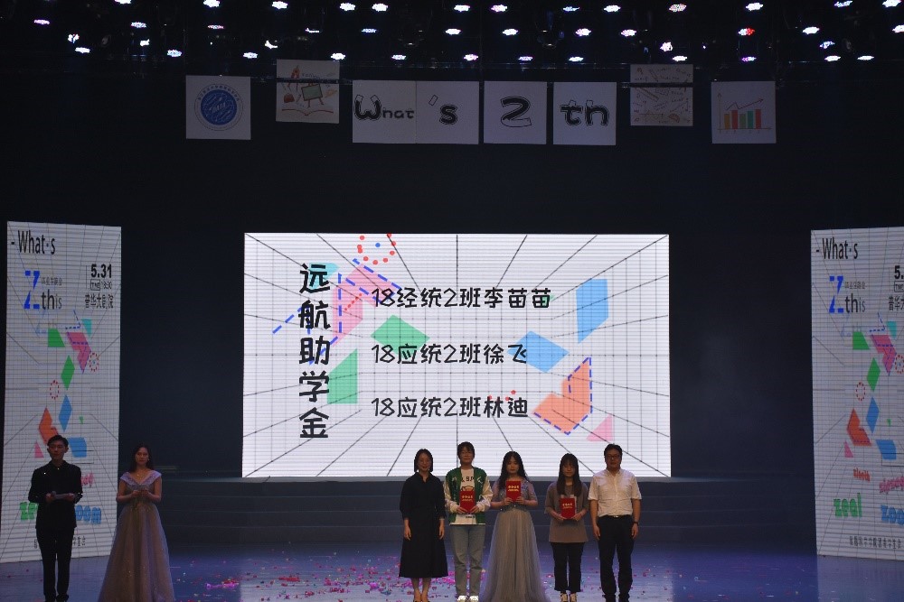 晚会中,由党委书记段雪辉、党委副书记何露霞为《郭桢爱心基金会·远航助学金》三位获奖者颁奖,鼓励自强自立的数科学子继续扬帆远航。