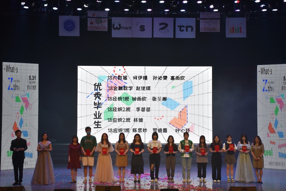 合作企业浙江砺行教育的鄢宇松先生、学院副院长李杰为11位“数科风云人物”颁发了奖状与纪念品,纪念他们在四年里创造的别样风华。