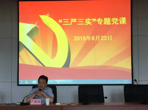 卢新波副校长首先向大家介绍了党中央提出“三严三实”的由来、内涵和重大意义,强调“三严三实”言简意赅,内涵丰富,应成为大家做人做事、教书育人的警世箴言。同时结合我校实际,对如何实现学校党代会提出的奋斗目标及学校下一步如何发展提出了自己的看法及建议,卢新波指出我校正处于转型升级新阶段,应该如何加大人才引进力度,引进高水平人才以及我校在今后工作中如何处理好学科之间、教师之间、教学与科研之间的关系,与大家进行了深入的交流。