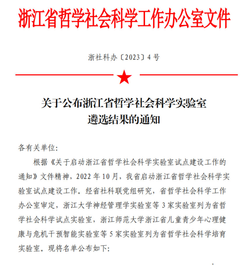 近日,浙江省哲学社会科学工作办公室公布了浙江省哲学社会科学实验室遴选结果(浙社科办[2023]4号),浙江财经大学浙江省域现代化监测与评价实验室”入选浙江省哲学社会科学培育实验室(5家)。