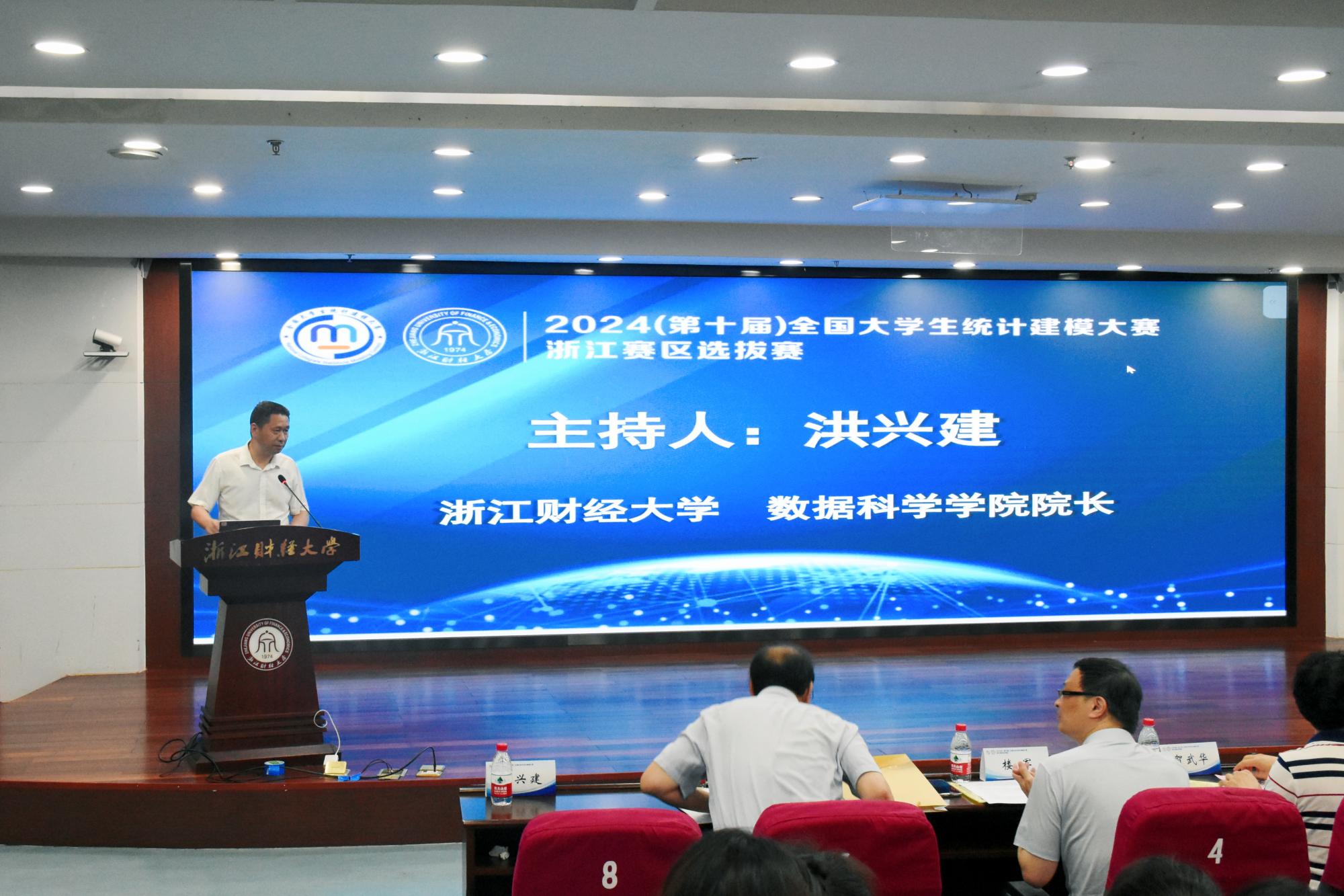 6月22日,2024年(第十届)全国大学生统计建模大赛浙江赛区选拔赛在浙江财经大学举行。浙江省统计局、暨南大学、兰州财经大学、浙江工商大学、杭州电子科技大学等单位专家出席开幕式,开幕式由数科学院院长洪兴建主持。