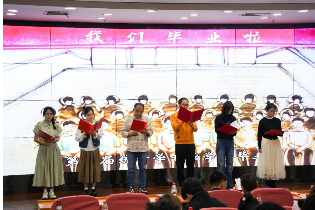 教师代表玉琴动情分享了自己的执教生涯二十多年的执教经历,她见证了学院从仅30名学生的单一专业,发展到如今师生人数2000名,言语中充满了作为“开垦者”的欣慰与自豪。学院的发展如同接力赛,希望未来数科学子能继续用数据智慧贡献社会,在广阔的天地里奋发有为。