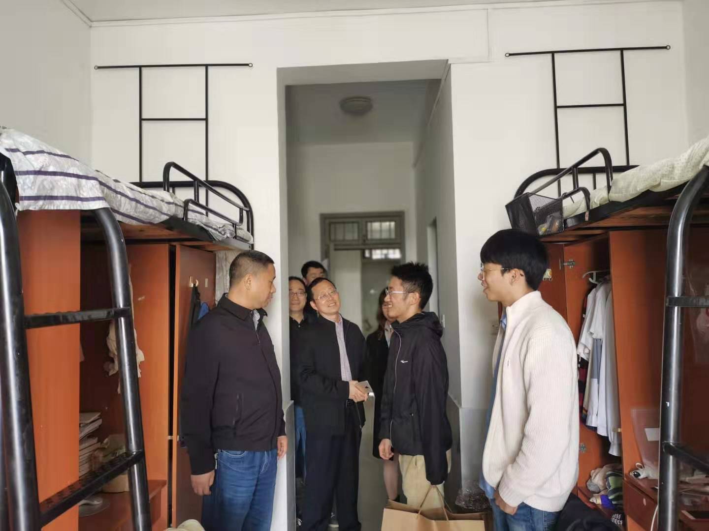近日,直播足球比分 院长洪兴建、党委书记周君兴、党委副书记刘向前、副院长罗季、周银香走访了“三联系”学生宿舍,询问关心了同学们的学习生活情况,给同学们带去了日用品和学习用品。辅导员李钊军、江挺、蒋萌陪同走访。