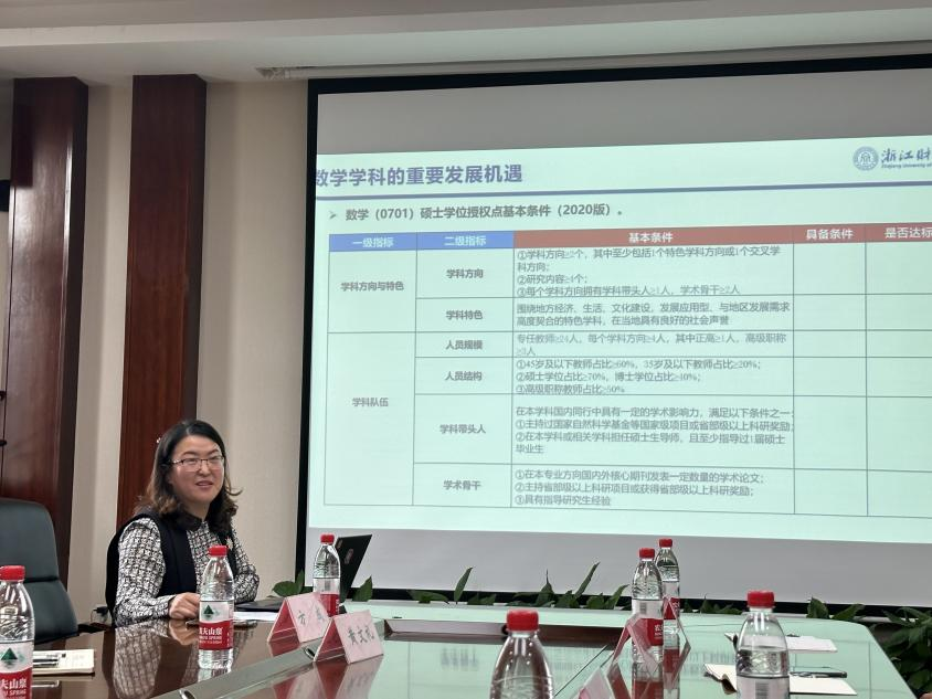 4月4日下午,雷速足球 在6号学院楼402会议室召开数学类专业与学科建设工作会议。中国金融研究院执行院长黄文礼教授、研究生院副院长罗季教授、教务处副处长方成副教授出席会议并汇报,雷速足球 党政领导班子以及数学类专业与学科方向负责人和骨干教师等10余人参加了本次研讨会。会议由教学院长李杰主持。