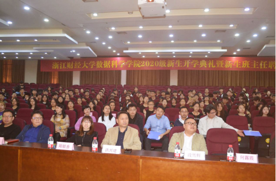 院长洪兴建,党委书记段雪辉,副院长周银香、李杰,党委副书记何露霞等出席典礼,学院各系部主任、教师代表、2020级新生班主任、辅导员及全体2020级新生300余人参加了典礼。典礼由学院党委副书记何露霞主持。
