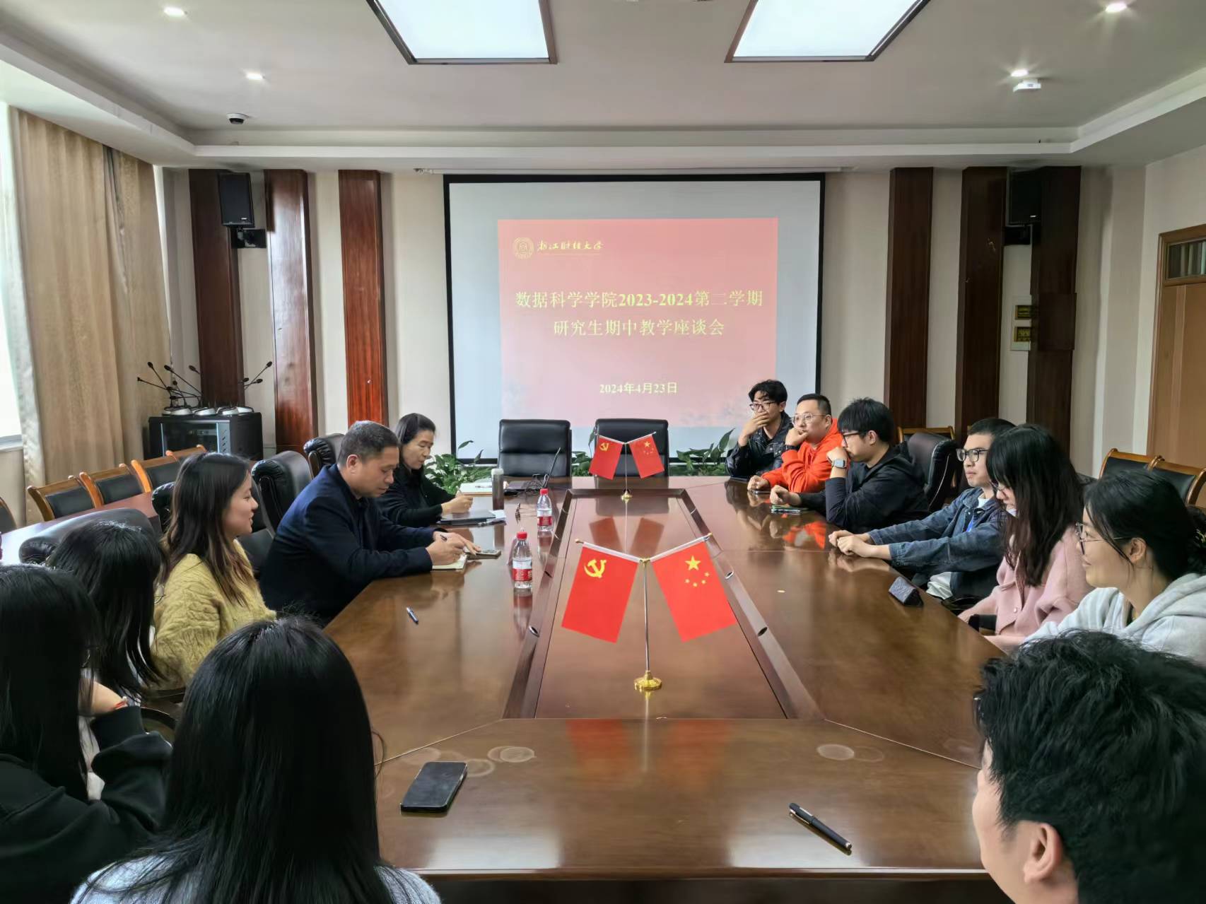 在6号楼402会议室召开2023-2024学年第二学期研究生期中座谈会。座谈会由院长洪兴建主持,校研究生督导组成员吴丽民、2023级研究生代表参加此次座谈会。