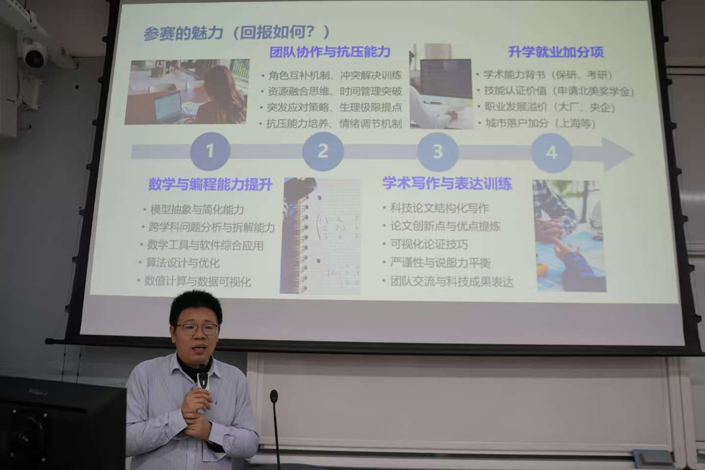 在下沙校区A303教室举办大学生数学建模竞赛指导讲座,邀请杭州电子科技大学的理学院副教授、博士、硕士生导师覃森担任主讲人,主题为“从‘小白’到‘达人’:大学生数学建模竞赛通关攻略”。覃森教授从“数学建模——用数学撬动世界”切入,依次揭秘数模竞赛的规则与魅力、讲解“梦之队”的组建分工逻辑、梳理从新手到“准高手”的备赛路线,并补充了竞赛制胜策略与常见误区提示,为有意参与数模竞赛的学生提供了系统性的实战指引。讲座由雷速足球