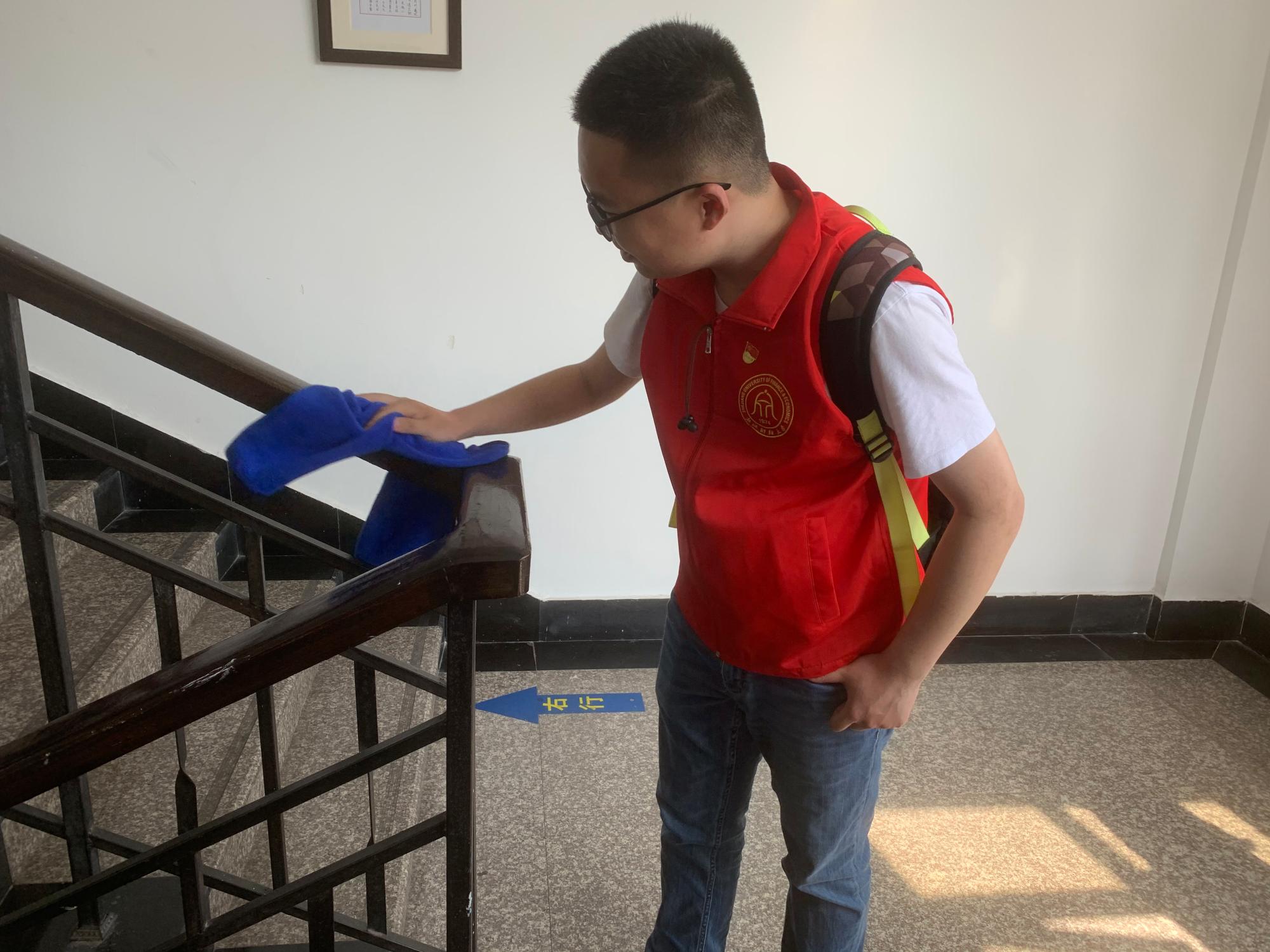 研究生党支部五位党员于桃李苑文华餐厅广场按时完成集合,并有序进行准备工作。在听取学校党委领导重要讲话和园区负责人几点嘱托后,研究生党员们有序前往所负责的成蹊苑51幢宿舍楼进行集合并领取相关活动用品。在宿舍管理员的指导下,党员们充满热情地开展志愿服务工作。党员们团结协作,分工明确,为创造一个更舒适、更卫生的园区环境贡献了自己的力量。